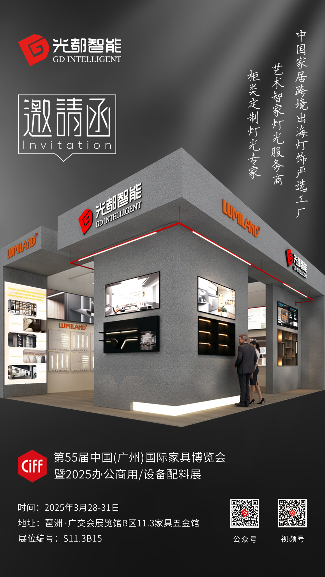 2025廣州辦公商用(yòng)/設備配料(木(mù)工(gōng)展)暨第55屆CIFF廣州家(jiā)愽會(huì)3.28-31日(rì)在廣州琶洲 ·™ 廣交會(huì)展覽館A、B、C、D區(qū)隆重舉辦,光(guāng)都(dōu)智能(néng)↔展位:B區(qū)11.3家(jiā)具五金(jīn)館,展位編号:S11.3B15,衆多(duō)新品首發,場(ch×ǎng)景沉浸體(tǐ)驗,面向全球市(shì)場(chǎng),助力夥伴升維,賦能(néng)客戶出海(hǎi),現(xiàn)場(ch&ǎng)深度交流,歡迎莅臨指導!誠邀展後訪廠(chǎng),春日(rì)羊城(chéng)不(bù)見(jiàn)不(bù)散!