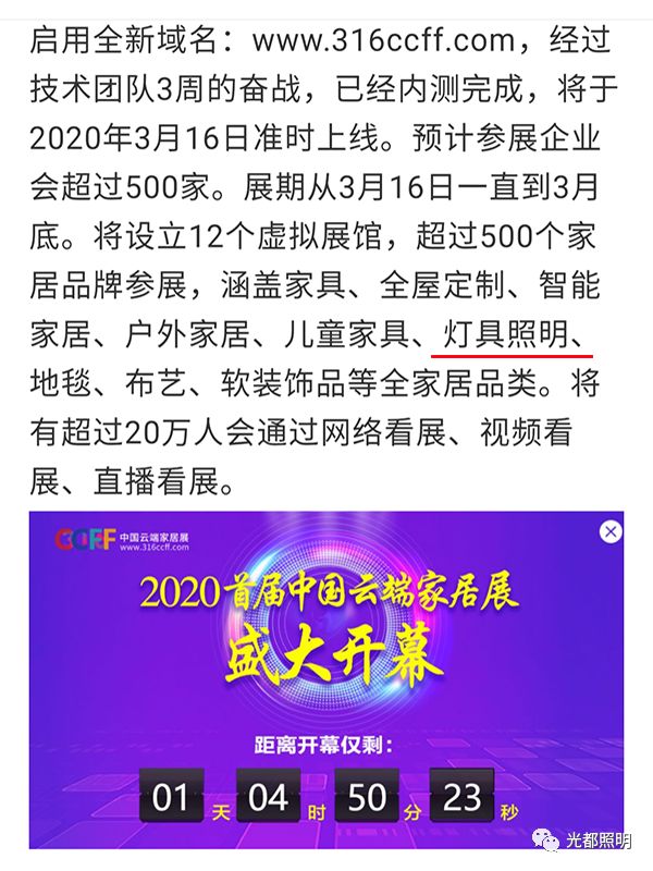 首屆316雲端家(jiā)居展3月(yuè)13日(rì)18:00于廣州塔盛大(dà)開(kāi)幕;500+參展商,20萬+觀展,熟悉的(de)318記憶,因為(wè i)熱(rè)愛(ài),我們再相(xiàng)約;3月(yuè)16-31日(rì),光(guāng)都(dōu)照(zhào)明(÷míng)(光(guāng)都(dōu)智能(néng))聯合參展11号館【軟裝飾品+高(gāo)端定制(φzhì)+酒店(diàn)家(jiā)居】,家(jiā)居人(rén)316雲端不(bù)見(jiàn)不(bù)散